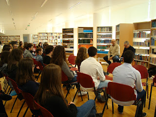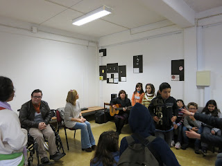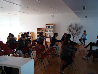 O público sentou-se de costas e os alunos leram alguns textos de olhos vendados...porque há palavras que vão muito para além da razão.